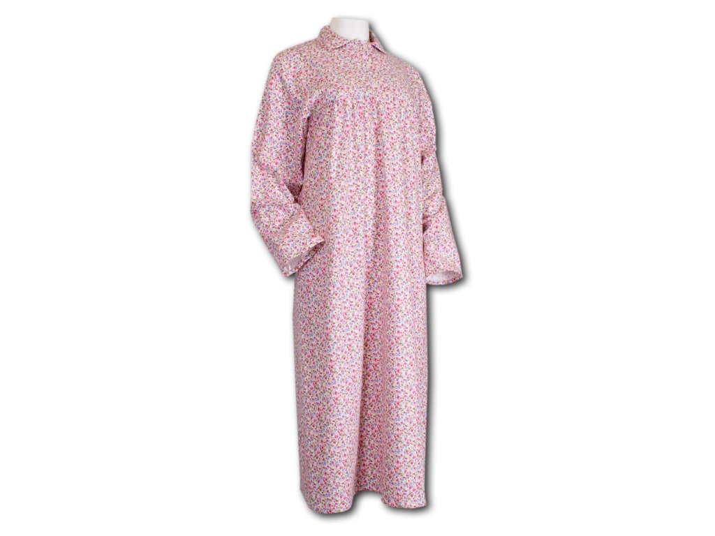 Flanelová noční košile pro dámy, které hledají pohodlí a teplo. Dlouhá košile s řasením přes prsa, jemným kulatým límečkem a několik knoflíků pro komfortnější oblékání.