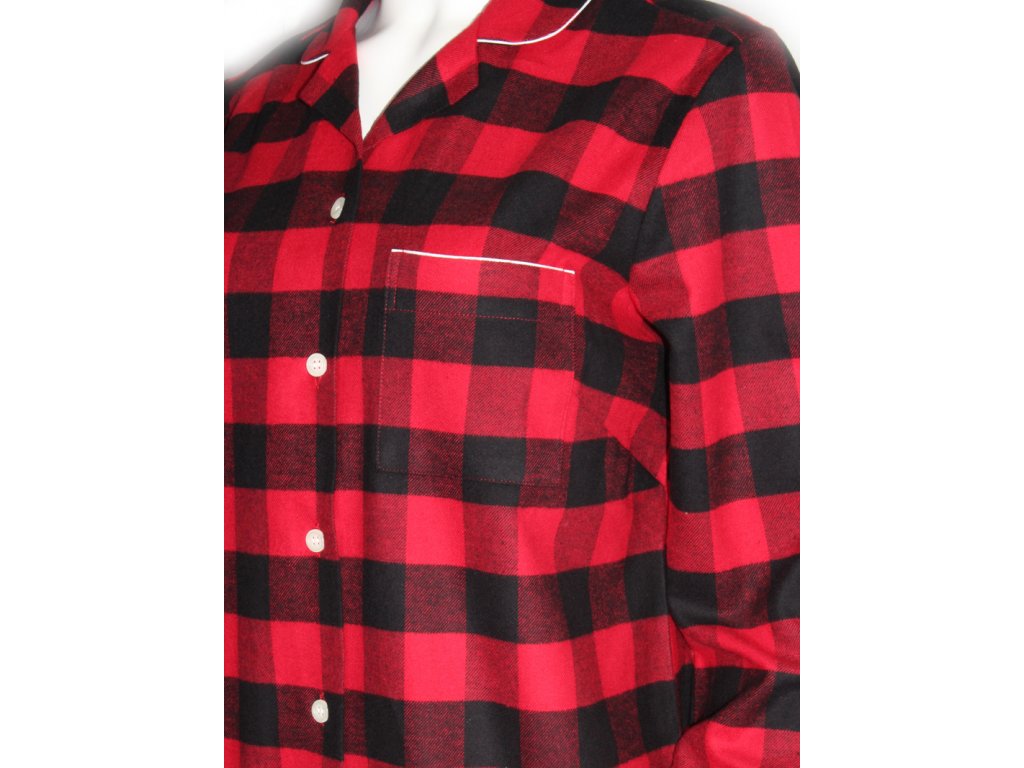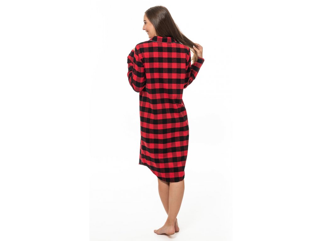 Dámská noční košile z kvalitního pestře tkaného flanelu, který je česaný z obou stran. S dlouhým rukávem a límečkem do rozhalenky. Košile je propínací na knoflíčky s krásným kostkovaným vzorem a kapsou na předním díle. Velmi pohodlná a hřejivá.
