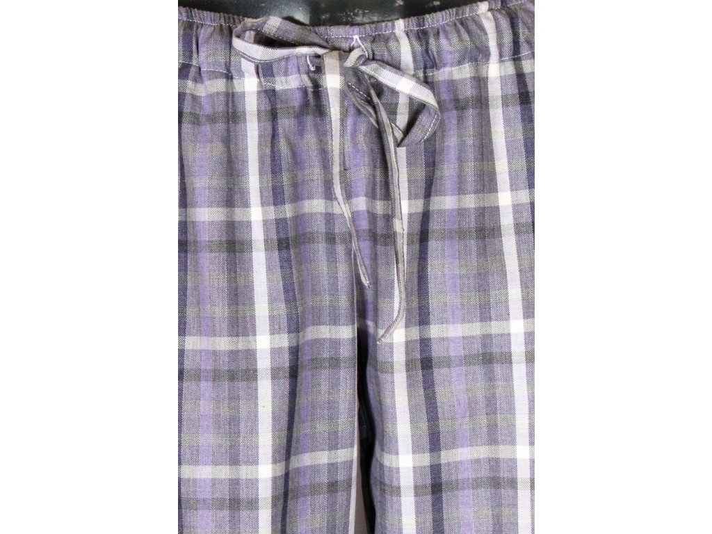 Kalhoty v pase do široké prošité gumy s navlečenou šňůrkou, pro případné stáhnutí v pase. Výška sedu je lehce snížená. Kalhoty nemají boční šev, pro větší pohodlí při spánku.