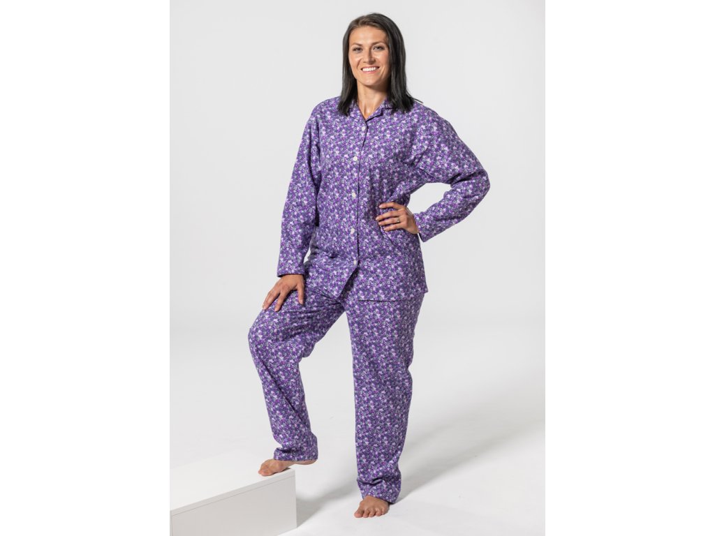 Dámské pyžamo Andrea s kvalitního oboustranně česaného flanelu, který je příjemný jak na tělo tak a omak. Pyžamo má dlouhé nohavice i rukáv. Kabátek na knoflíky, u krku s rozhalenkou, jedna menší kapsa v délce. kalhoty do široké navlečené gumy, kterou si můžete vyměnit.