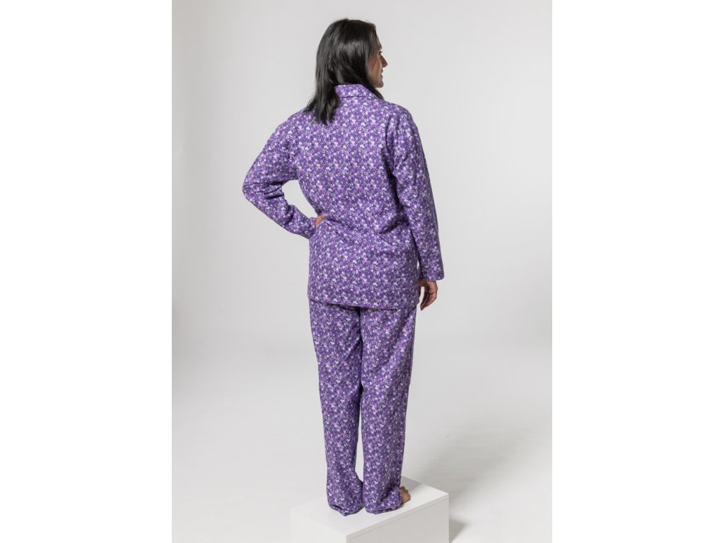 Dámské pyžamo Andrea s kvalitního oboustranně česaného flanelu, který je příjemný jak na tělo tak a omak. Pyžamo má dlouhé nohavice i rukáv. Kabátek na knoflíky, u krku s rozhalenkou, jedna menší kapsa v délce. kalhoty do široké navlečené gumy, kterou si můžete vyměnit.