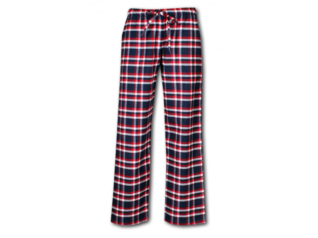 Kalhoty v pase do široké prošité gumy s navlečenou šňůrkou, pro případné stáhnutí v pase. Výška sedu je lehce snížená. Kalhoty nemají boční šev, pro větší pohodlí při spánku.