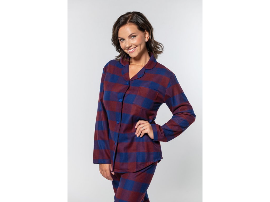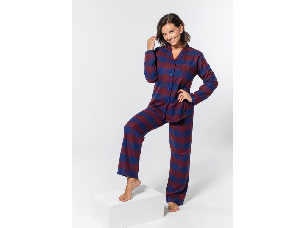 Dámské flanelové pyžamo Sabina 2165 károvaná vínová
