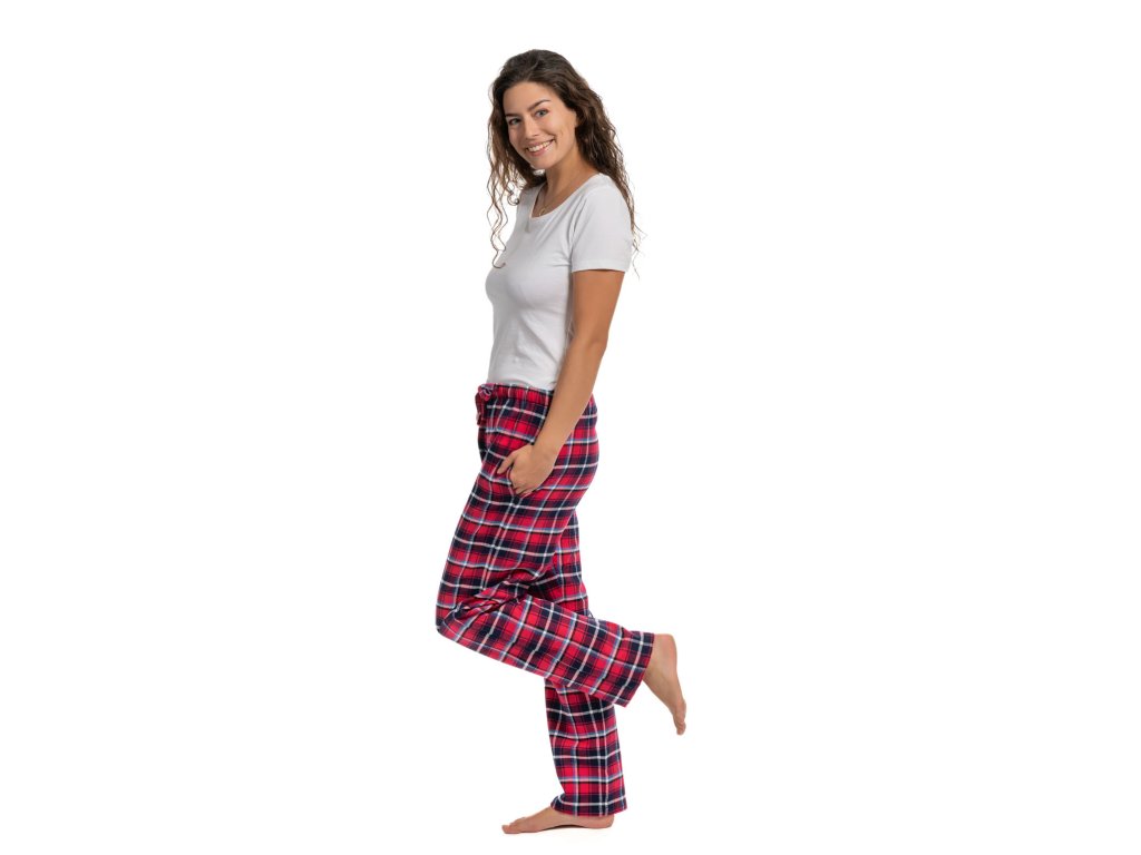Dámské flanelové kalhoty z kvalitního česaného flanelu. Kalhoty využijete jako pyžamo, nebo na domácí nošení. Kalhoty jsou příjemné na dotek, hřejivé a střih je velmi pohodlný. V pase jsou do široké prošité gumy s navlečenou šňůrkou, po bocích jsou kapsy ve švu. Vyzkoušejte je a nebudete chtít nosit jiné.