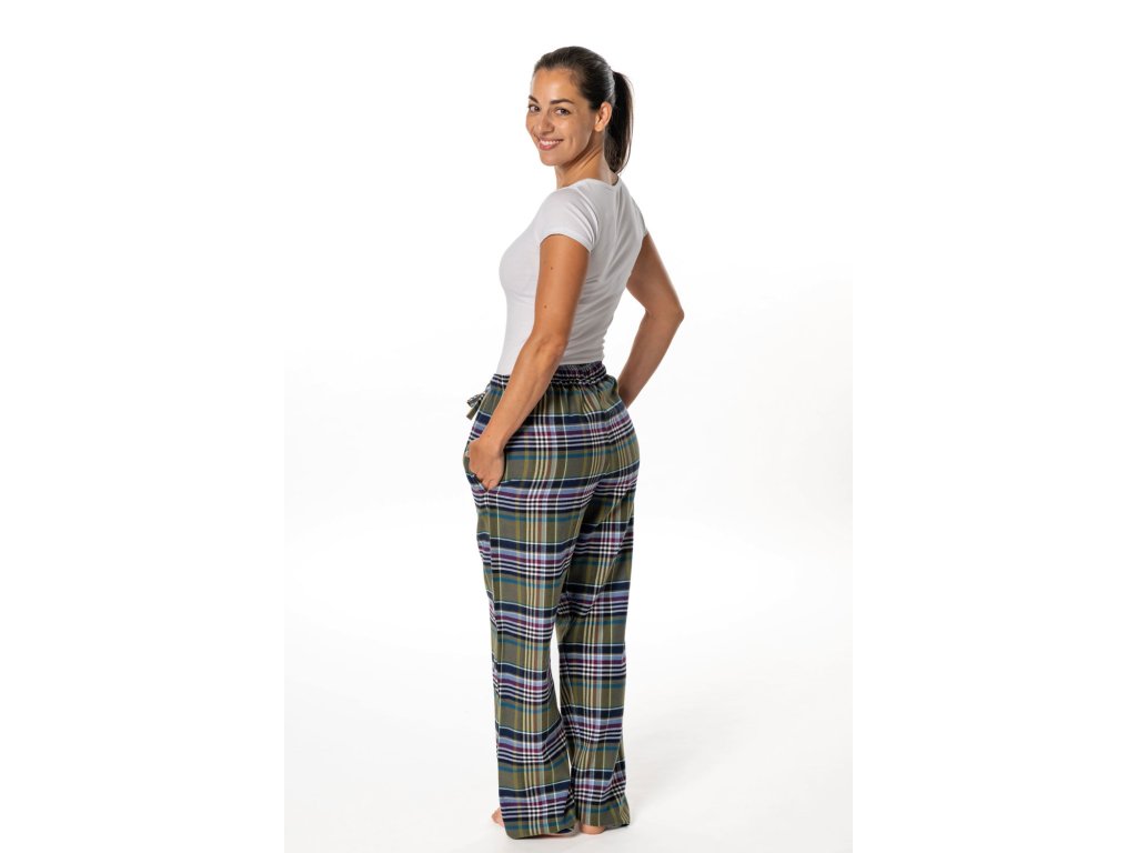 Dámské flanelové kalhoty z kvalitního česaného flanelu. Kalhoty využijete jako pyžamo, nebo na domácí nošení. Kalhoty jsou příjemné na dotek, hřejivé a střih je velmi pohodlný. V pase jsou do široké prošité gumy s navlečenou šňůrkou, po bocích jsou kapsy ve švu. Vyzkoušejte je a nebudete chtít nosit jiné.