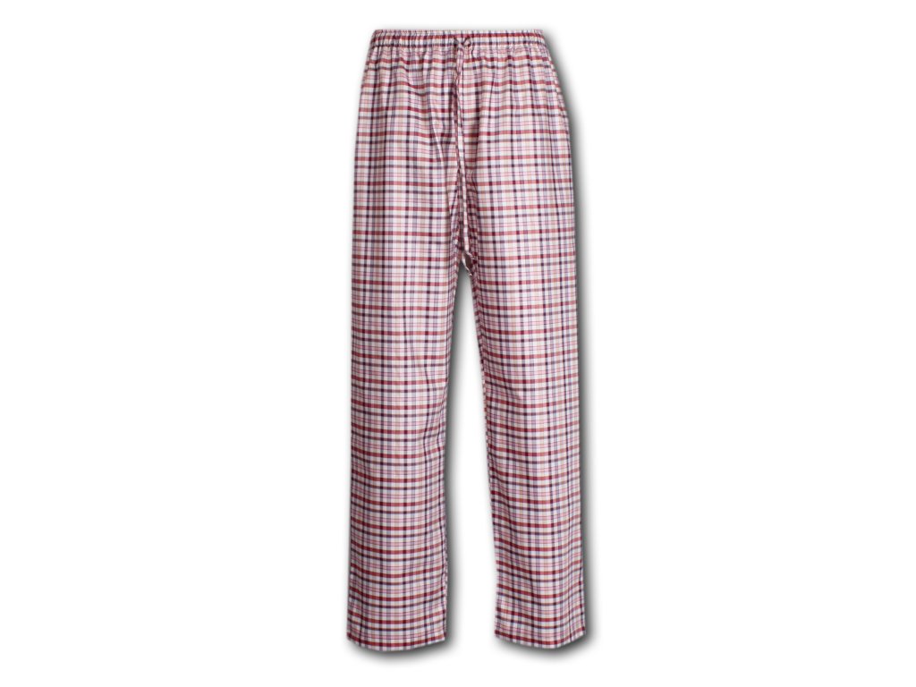 Pohodlné popelínové domácí kalhoty, s širokou prošitou gumou v pase a navlečenou šňůrkou, dvě boční kapsy.