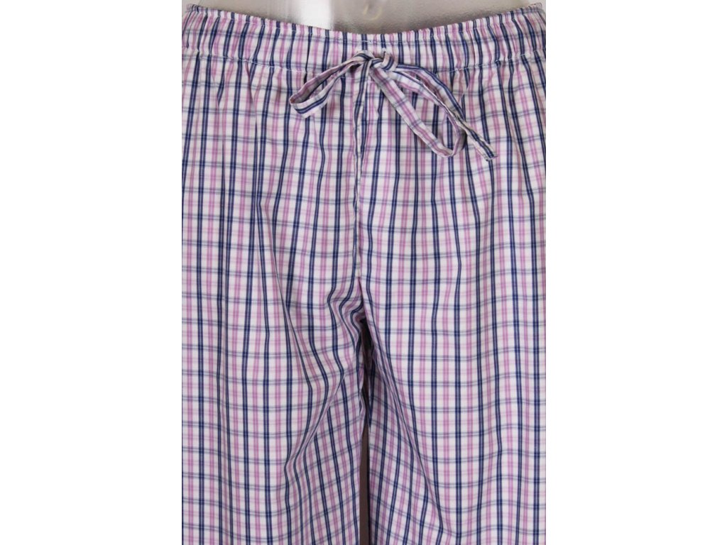 Pohodlné popelínové domácí kalhoty, s širokou prošitou gumou v pase a navlečenou šňůrkou, dvě boční kapsy.
