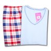 Kalhoty s pestře tkaného flanelu, tričko ze 140g úpletu.