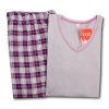Dámské domácí oblečení - dámské pyžamo, tento výrobek má dvoje využití. Tričko z kvalitního bavlněného úpletu s výstřihem do "V" a okrasným prošitím. Dlouhé kalhoty v pase do široké prošité gumy s navlečenou šňůrkou a kapsami v bocích. Krásné propracování jak barev, tak celého výrobku.