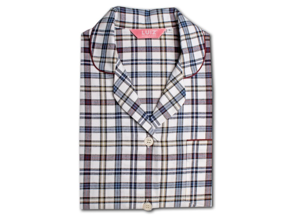 Elegantní dámské pyžamo na propínání v zajímavém provedení i zpracování. Pyžamo je s dlouhým rukávem i nohavicí, lemované ozdobnou paspulkou.