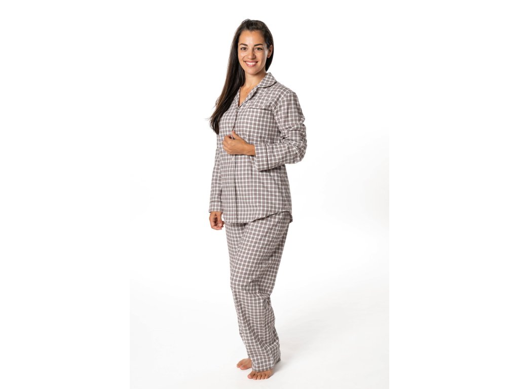 Elegantní dámské pyžamo na propínání v zajímavém provedení i zpracování. Pyžamo je s dlouhým rukávem i nohavicí, lemované ozdobnou paspulkou.
