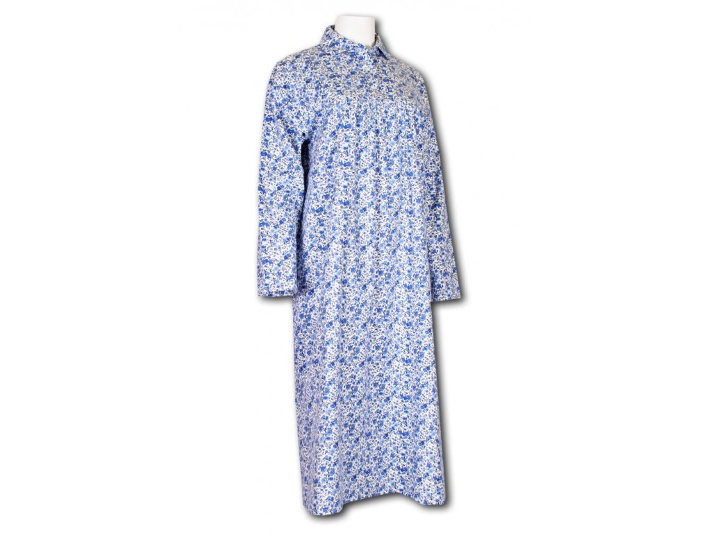 Flanelová noční košile pro dámy, které hledají pohodlí a teplo. Dlouhá košile s řasením přes prsa, jemným kulatým límečkem a několik knoflíků pro komfortnější oblékání.