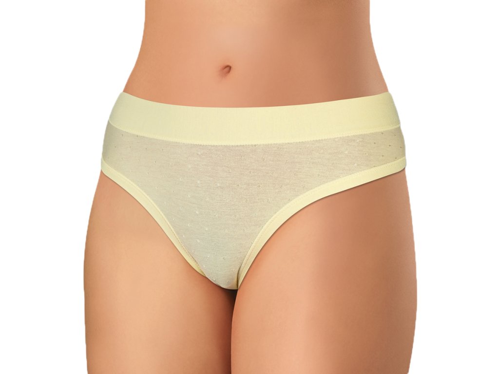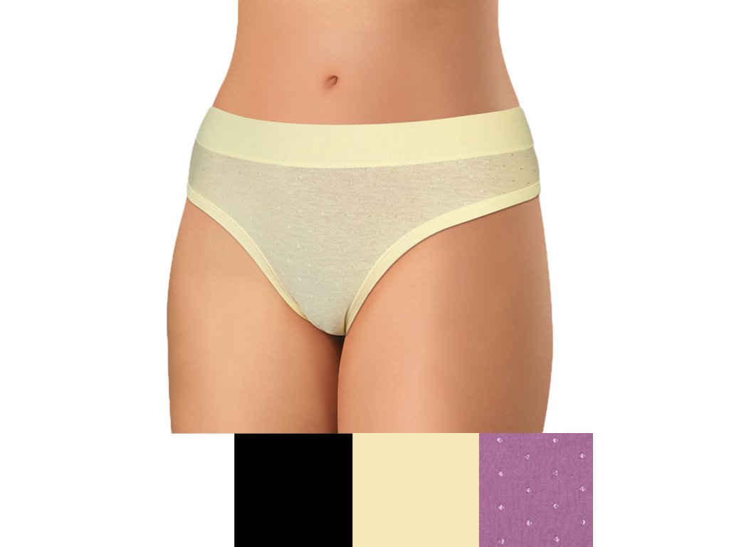 Dámské kalhotky klasického střihu. Kalhotky jsou vyrobeny z velmi kvalitní elastické bavlny s příměsí vlákna Tactel, které dodává materiálu hebkost a prodyšnost. Na předním dílu kalhotek je hezký žakár. Zadní díl kalhotek je hladký. Materiál se skvěle přizpůsobí postavě a drží stálý tvar prádla. Díky širokému lemu v pase ideálně přiléhají k tělu a jsou velmi pohodlné. Komfortní lem okolo nohou zaručuje, že se kalhotky nezařezávají do stehen.
