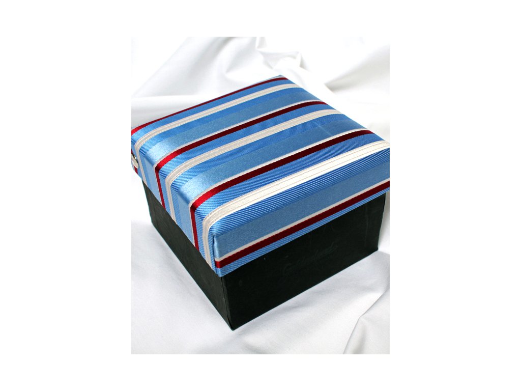 Dárková krabička obsahuje kravatu, manžetové knoflíčky a kapesníček. Vše úhledně zabaleno do krabičky ve stejném dezénu.