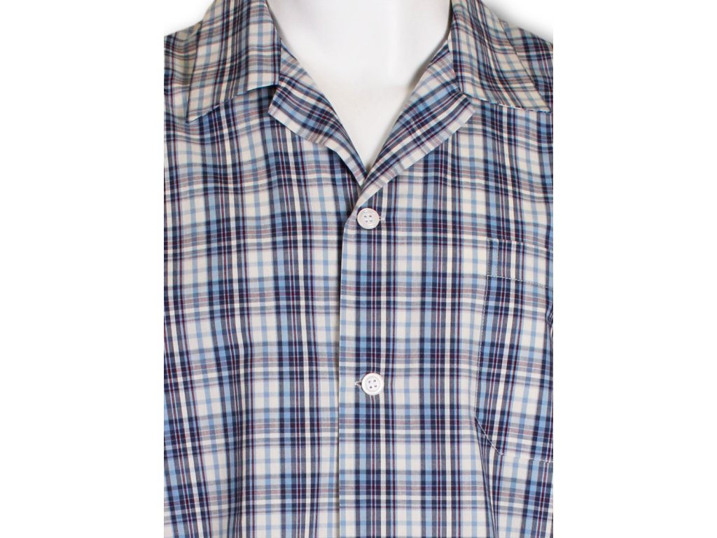 Elegantní pánské pyžamo na knoflíky. Pyžamo s krátkým rukávem i nohavicí. Kabátek s rozhalenkou a kapsou, kalhoty v pase do prošité široké gumy.