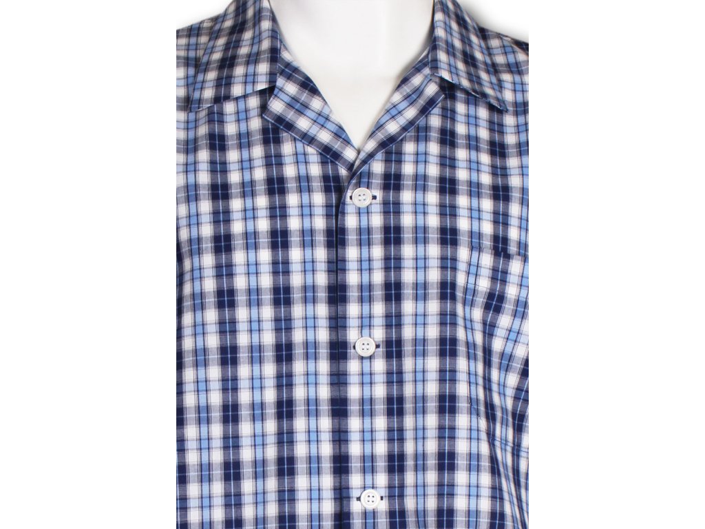 Elegantní pánské pyžamo na knoflíky. Pyžamo s krátkým rukávem i nohavicí. Kabátek s rozhalenkou a kapsou, kalhoty v pase do prošité široké gumy.