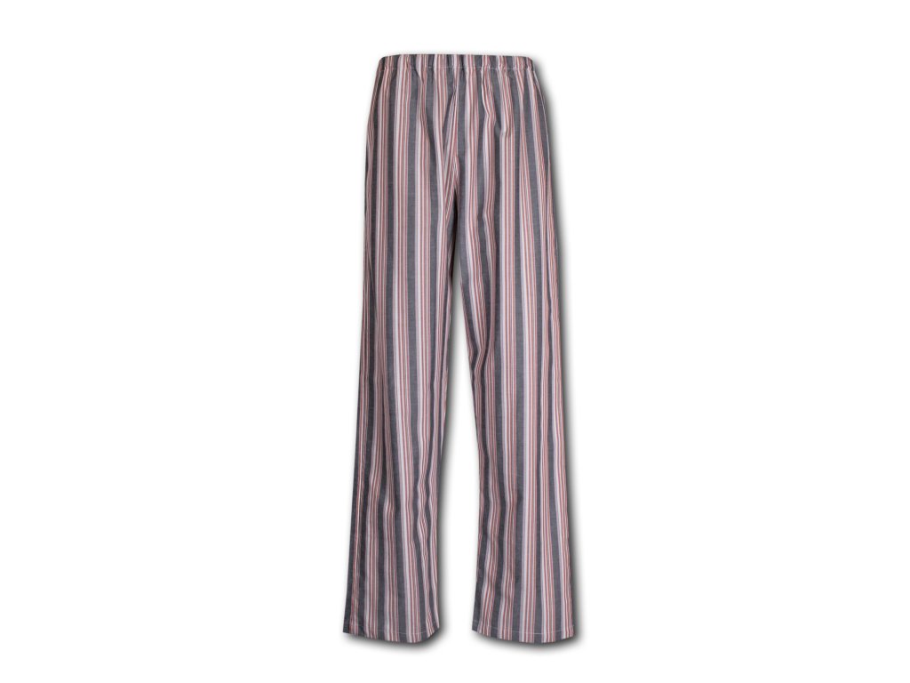 Pánské popelínové pyžamo Charles rovného střihu z kvalitního popelínu. Kabátek je na knoflíky s jednou náprsní kapsou a kapsou v délce kabátku, kalhoty dlouhé do navlečené širší gumy, takže ji lehce můžete vyměnit.