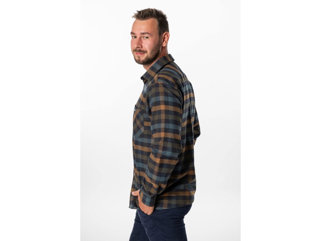 Košile má dvě náprsní kapsy, které jsou střižené nakoso a mají knoflíček, rukáv do manžety na dva knoflíky.