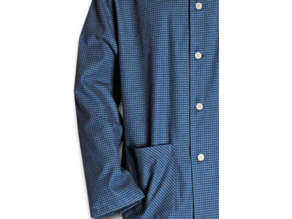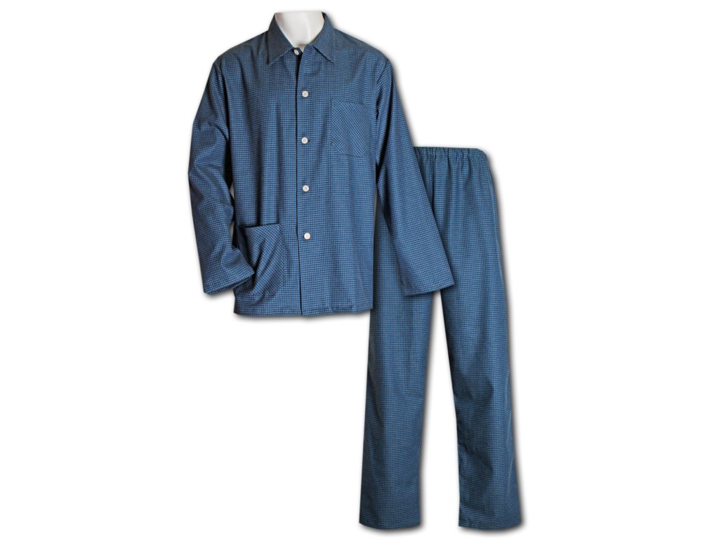 Pánské flanelové pyžamo Jirka TOP na knoflíky v jednoduchém zpracování. Pyžamo je s dlouhým rukávem i nohavicí. Kabátek je se zapínám až ke krku s kapsami na hrudníku a v délce. Kalhoty v pase do široké gumy, která se dá v případě potřeby vyměnit, není prošitá.