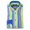 Zelený základ košile s modrými proužky - Nepřehlédnutelné košile v extravagantních barvách jsou ideální pro muže, kteří se nebojí vybočit z řady a být středem pozornosti. Extravagantní barvy ukazují váš osobitý styl a originalitu. Košile v těchto barvách doporučujeme sladit s džíny a kalhotami v neutrálních barvách.