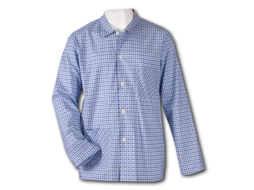 Pánský pyžamový kabátek z bavlny, který se dá kombinovat s naším pánským pyžamem Karel. Kabátek je s dlouhým rukávem a kapsičkami. Zapínání na knoflíky až ke krku.