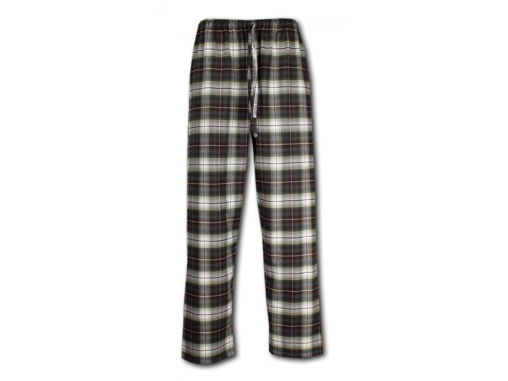 Pánské dlouhé domácí kalhoty, vhodné na spaní i na běžné nošení na doma. Příjemný volný střih z teplého kvalitního pestře tkaného flanelu. V pase na gumu a šňůrku. Pohodlné kapsy na bocích.