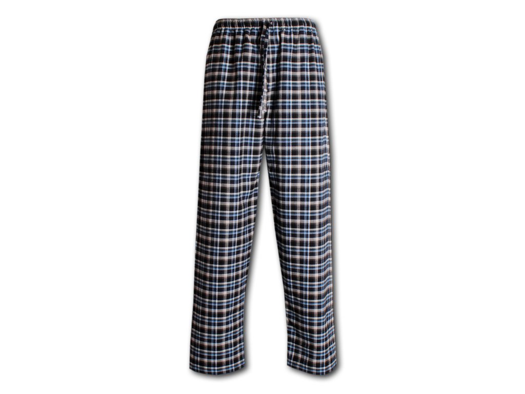 Pánské dlouhé domácí kalhoty, vhodné na spaní i na běžné nošení na doma. Příjemný volný střih z teplého kvalitního pestře tkaného flanelu. V pase na gumu a šňůrku. Pohodlné kapsy na bocích.