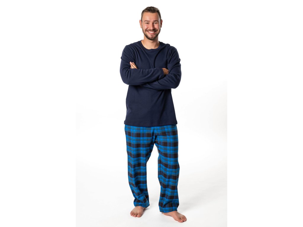 Pánské dlouhé domácí kalhoty, vhodné na spaní i na běžné nošení na doma. Příjemný volný střih z teplého kvalitního pestře tkaného flanelu. V pase na gumu a šňůrku. Pohodlné kapsy na bocích.