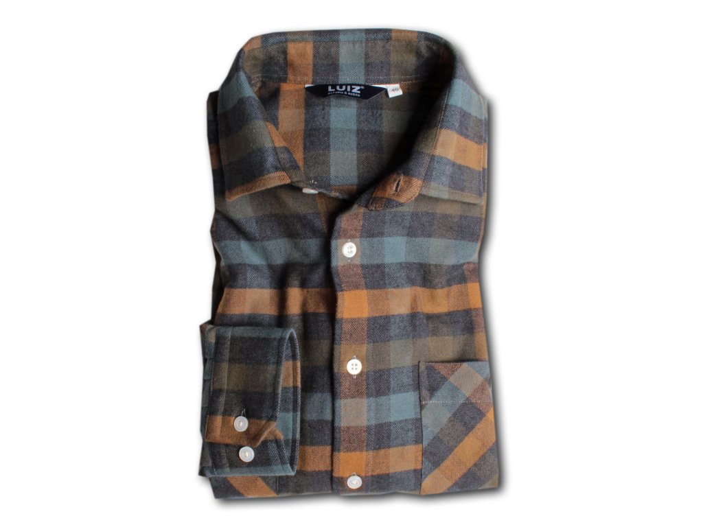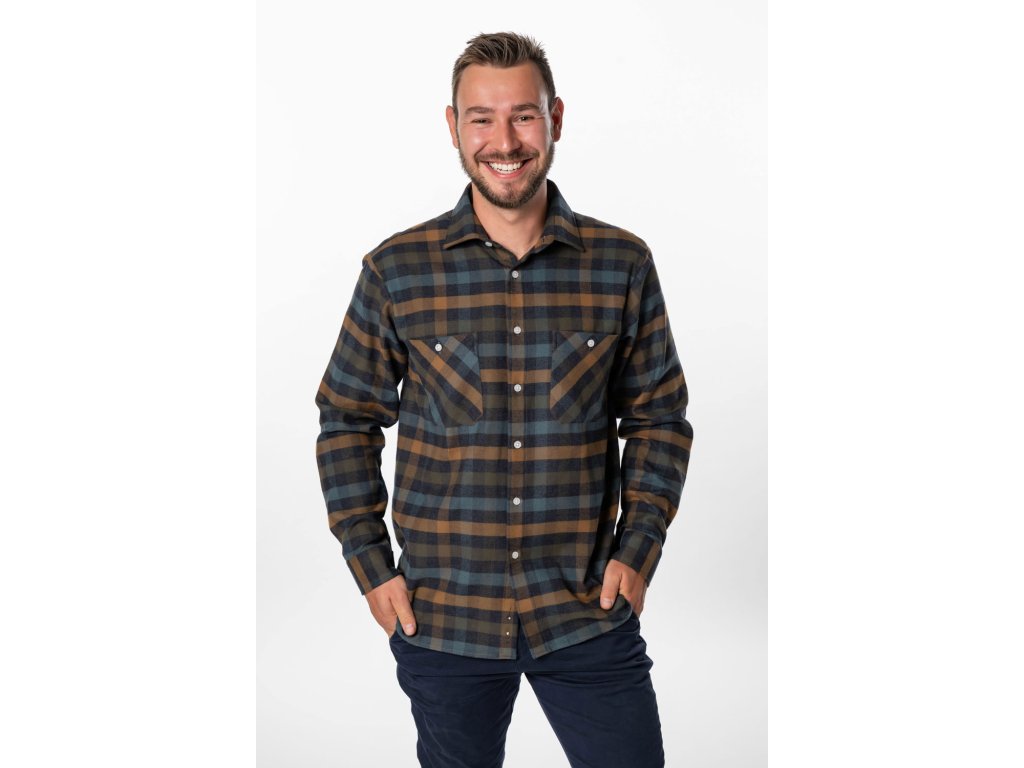 Pánská flanelová košile v prodloužené délce. Prodloužená délka košile je o 5 cm a rukávu o 3 cm.