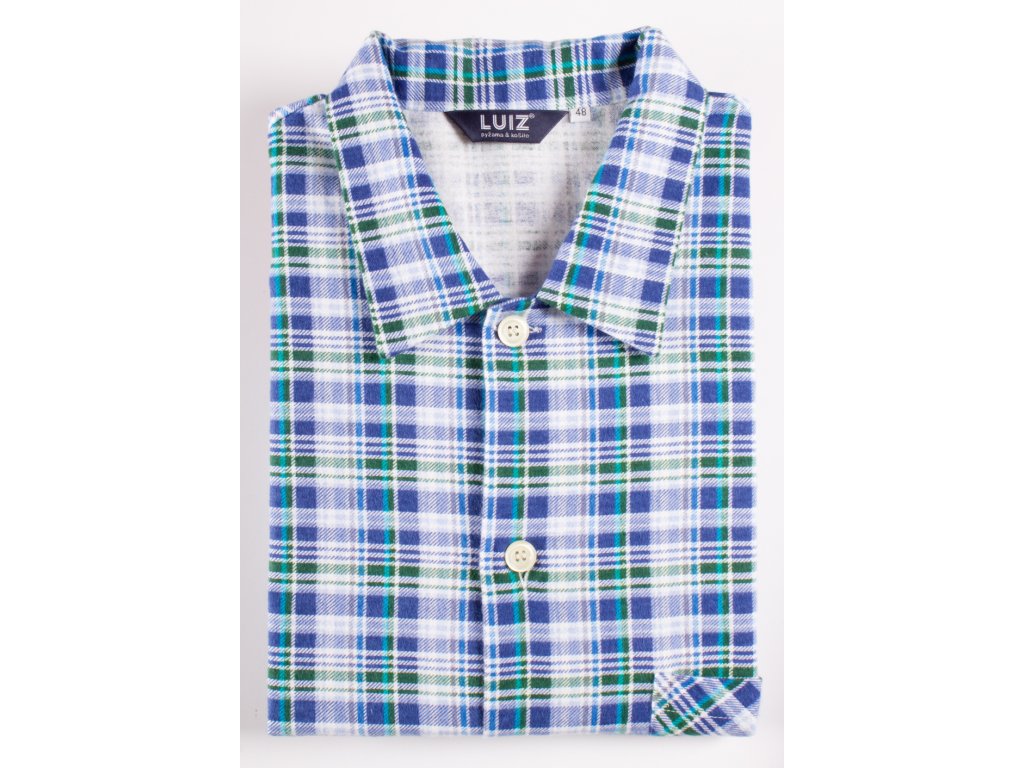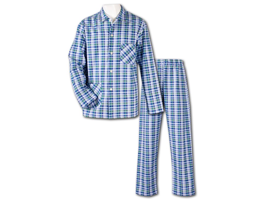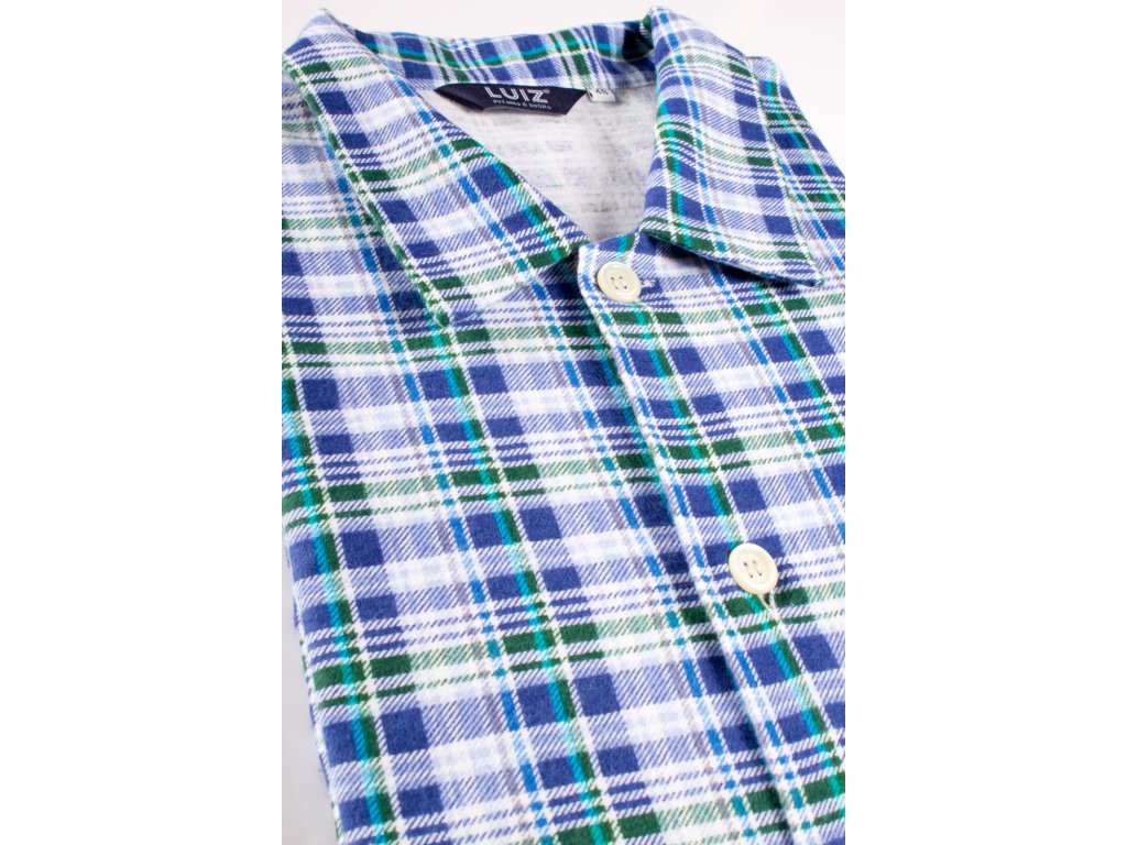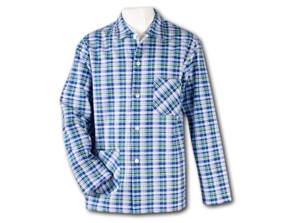Pánské flanelové pyžamo Jirka na propínání v jednoduchém zpracování. Pyžamo je s dlouhým rukávem i nohavicí. Kabátek zapínání ke krku a kapsami na hrudníku a v délce, kalhoty v pase do široké gumy, která se dá v případě potřeby vyměnit.