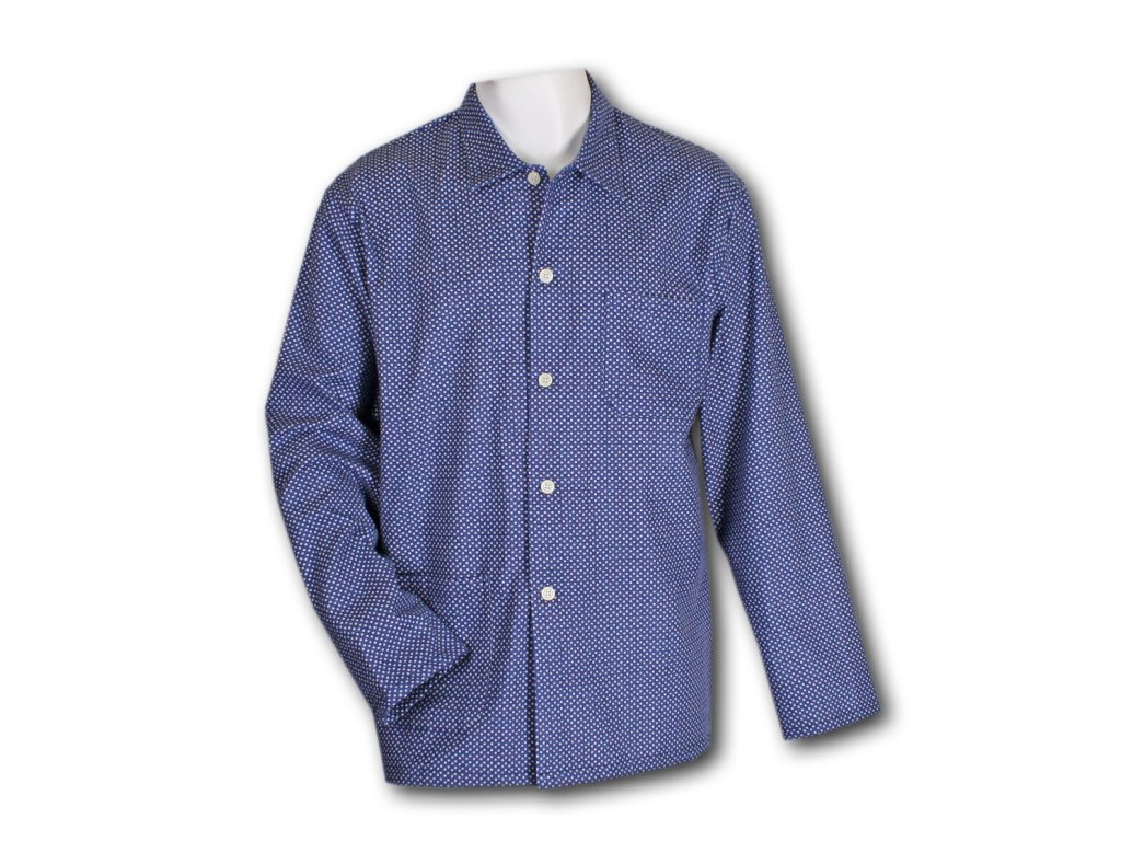 Pánský pyžamový kabátek z tištěného a oboustranně česaného flanelu, který se dá kombinovat s naším pánským pyžamem Jirka. Kabátek je s dlouhým rukávem a kapsičkami. Zapínání na knoflíky až ke krku, nebo možnost rozhalenky.