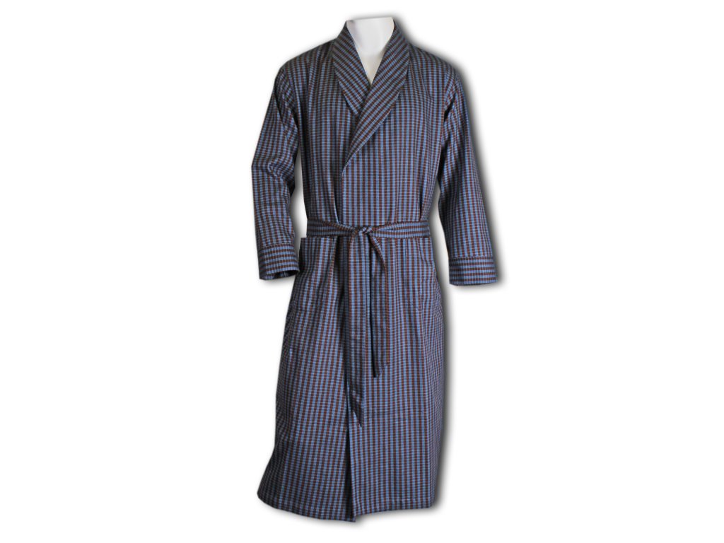 Župan je s šálovým límcem, vázačkou a kapsami. Elegantní kostkovaný vzor. Délka 130 cm. Velice příjemný materiál ze 100% bavlny.