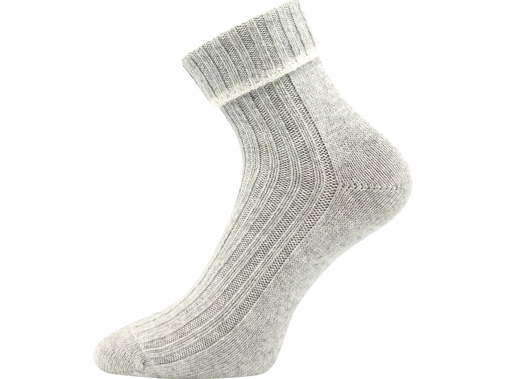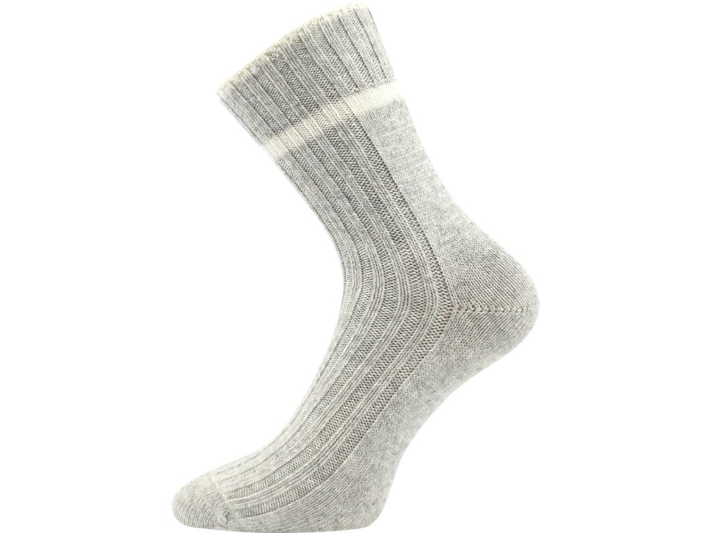 Žebrovaný úplet je pohodlný a volný lem nohu nepříjemně nestahuje. Ponožky VoXX® můžete nosit natažené nebo si je můžete ozdobně ohrnout. Teplotní třída je C, bez obav je můžete nosit v rozmezí od -20°C do +5°C.