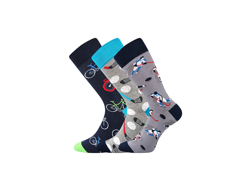 Dámské i pánské ponožky s elastanem, které jsou CRAZY párované a stylové .Vyrobené z kvalitních přírodních materiálů českou firmou BOMA. Jemný lem kolem nohy, který netlačí. Ponožky mají vzory oblíbených sportů. Velmi povedené a veselé ponožky.