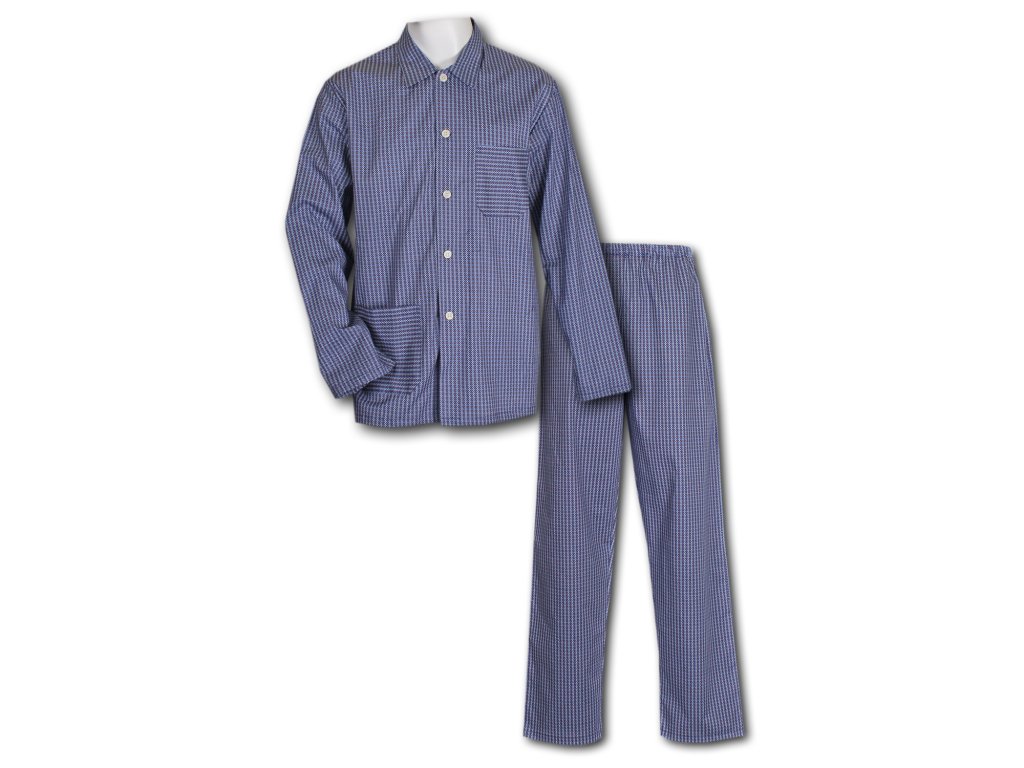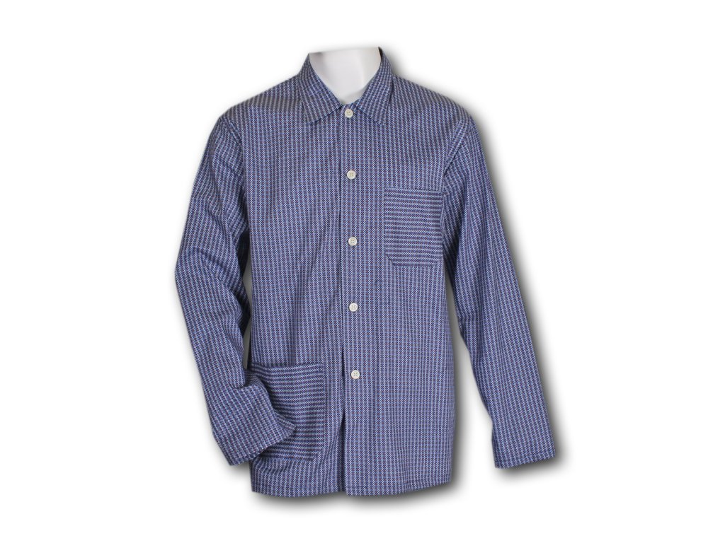 Pánské pyžamo Karel na knoflíky, s dlouhým rukávem i nohavicí. Kabátek je až ke krku a s kapsami, kalhoty v pase do gumy.