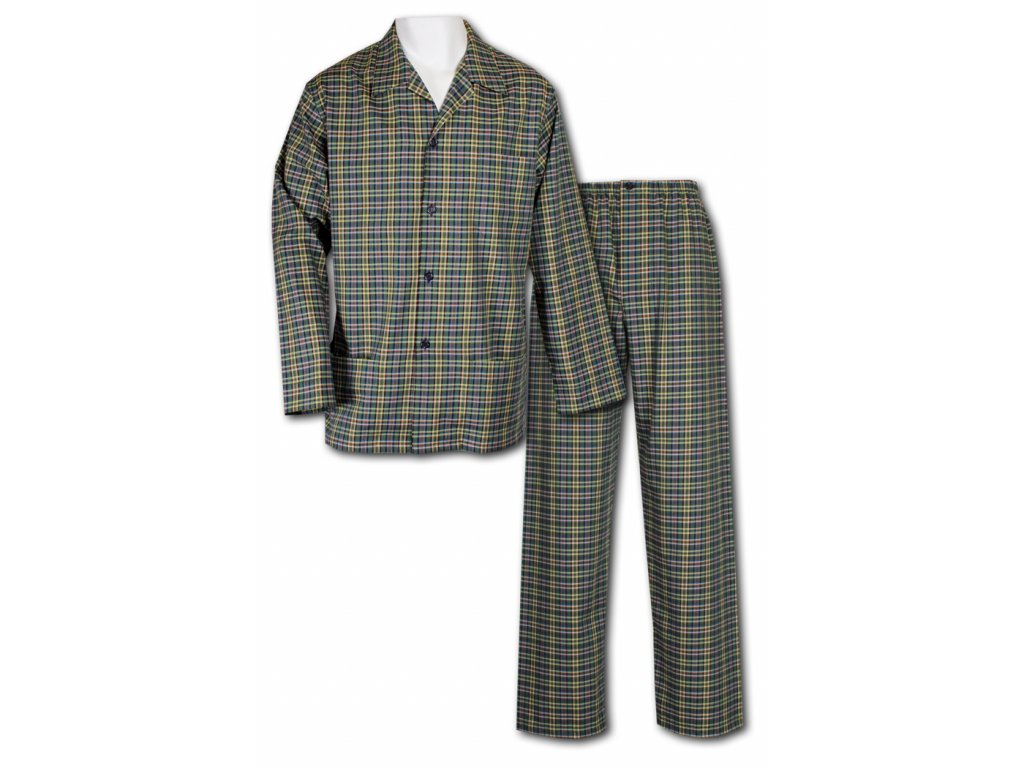 Pyžamo je s dlouhým rukávem i nohavicí. Kabátek je s rozhalenkou, třemi kapsami a zdobený rukáv manžetou. Kalhoty v pase do gumy s rozparkem na dva knoflíky.